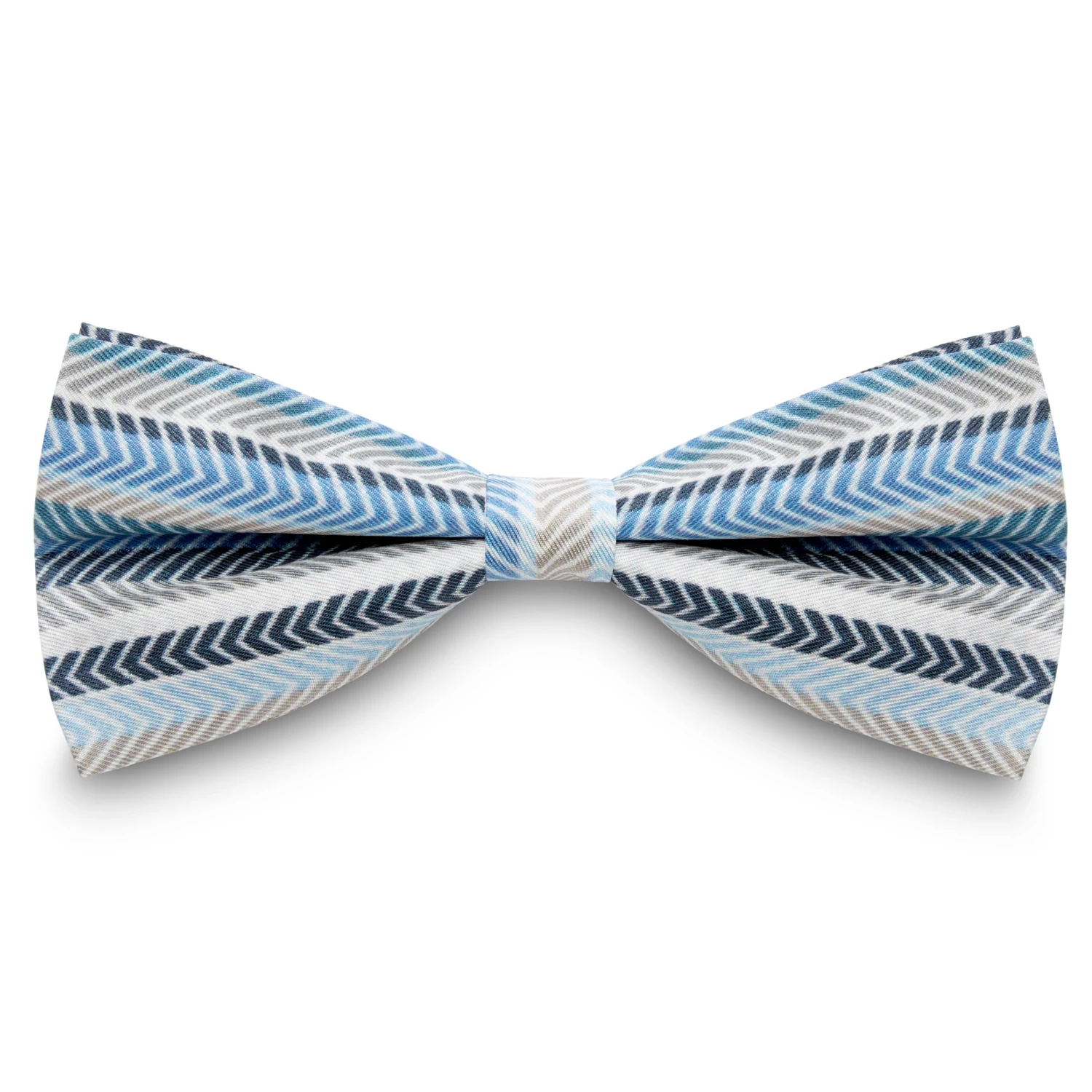 Achieve an urbane look with this classy bow tie. The blue and grey herringbone stripes on soft supple silk make for a luxurious wearing experience. Designed with a pre-tied bow for easy wearing, plus an adjustable strap for comfort.