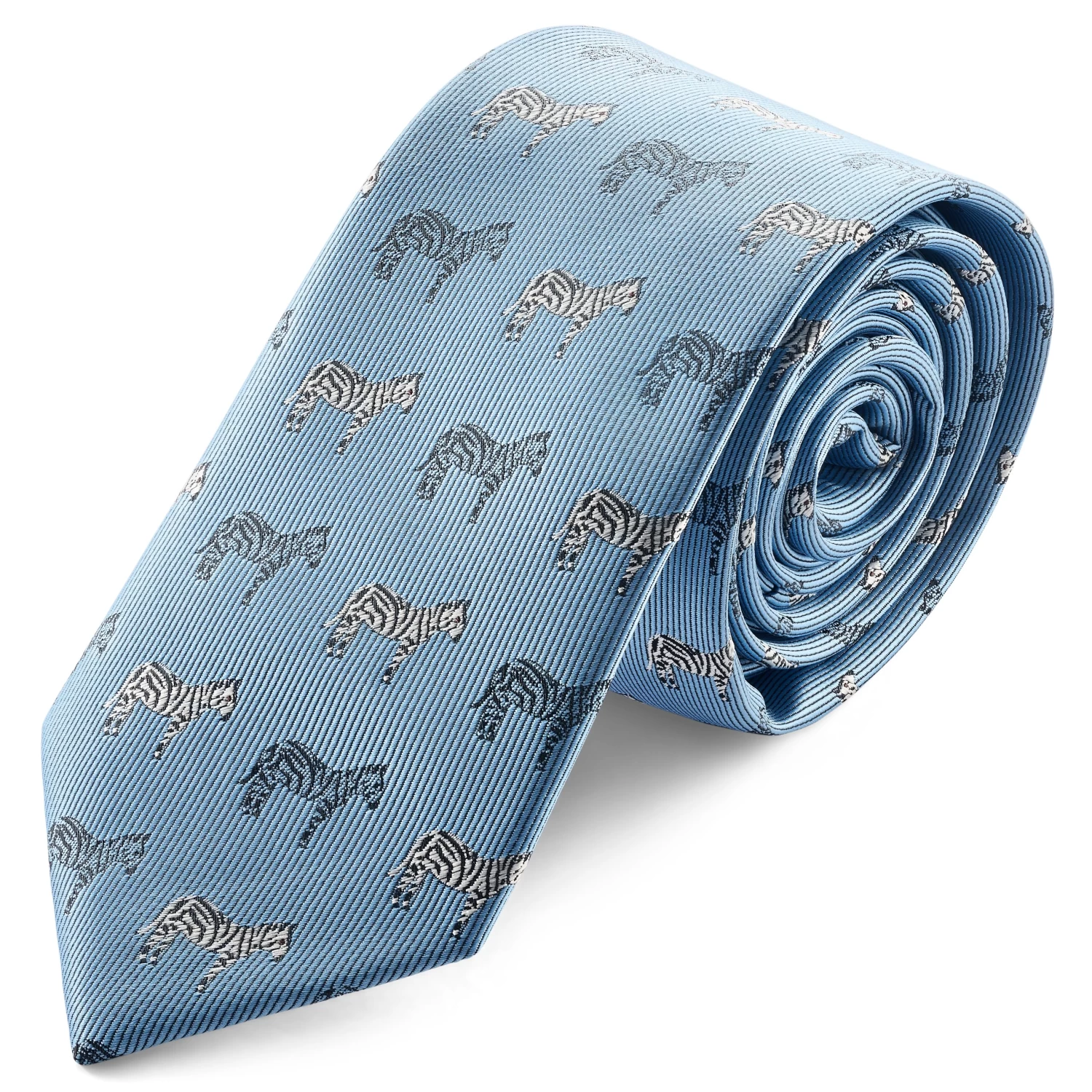 A breathtaking blend of wild charm and sophisticated style. This alluring light blue tie showcases the enchanting beauty of zebra stripes, whisking you away on a fashion safari like no other. Dare to stand out and exhibit your untamed taste for the unique with this conversation-igniting accessory.