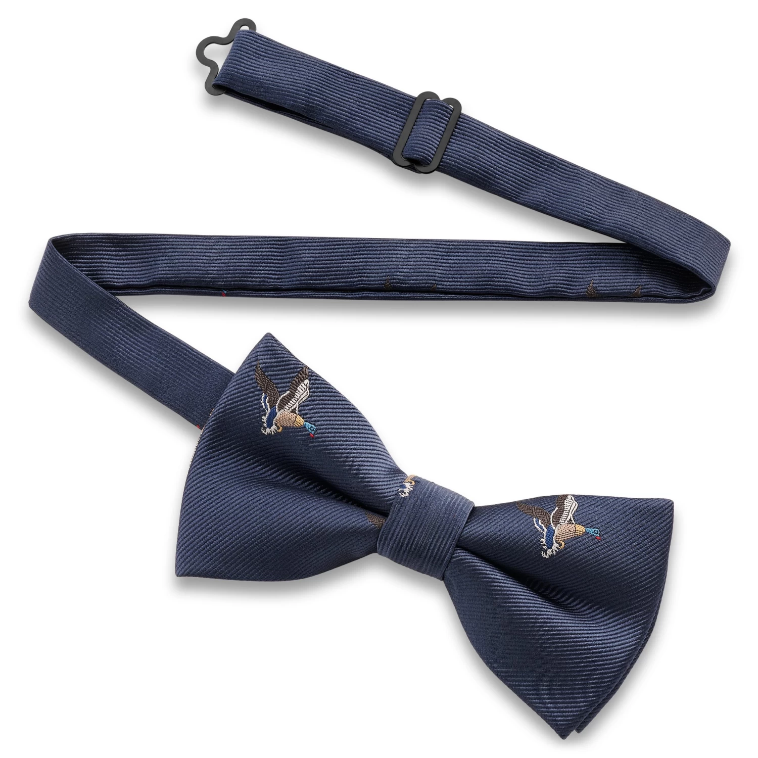 Make a bold yet whimsical statement at any affair with this sophisticated navy blue bow tie featuring playful ducks. Blend your love for wildlife with a touch of luxury.