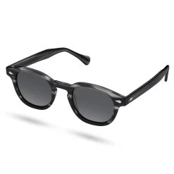 Monochrome Tortoiseshell Round Horn Rimmed Polarised Sunglasses